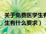 您好,今天帅帅来为大家解答以上的问题。关于免费医学生有什么要求吗,关于免费医学生有什么要求相信很多小伙伴还不知道,现在让我们一起来看 浏览全文>>