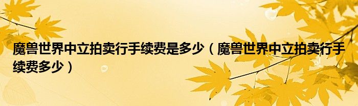魔兽世界中立拍卖行手续费是多少(魔兽世界中立拍卖行手续费多少)