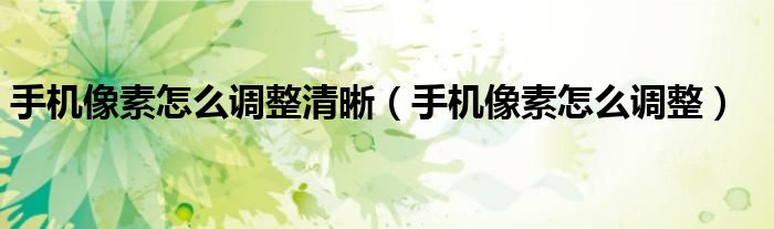 手机像素怎么调整清晰(手机像素怎么调整)