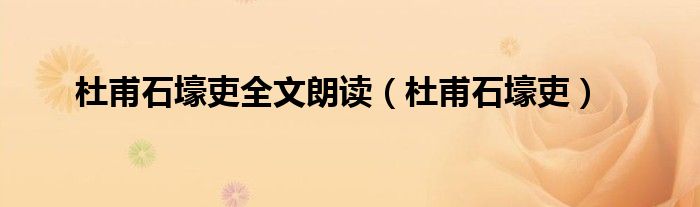 杜甫石壕吏全文朗读(杜甫石壕吏)