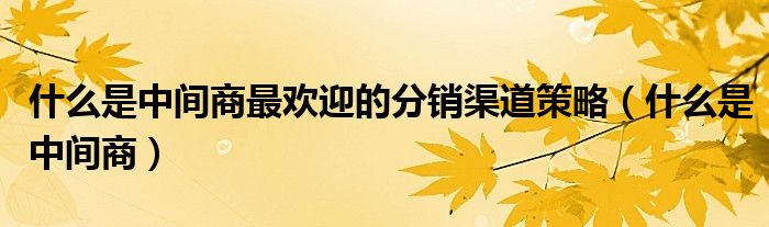 什么是中间商最欢迎的分销渠道策略(什么是中间商)