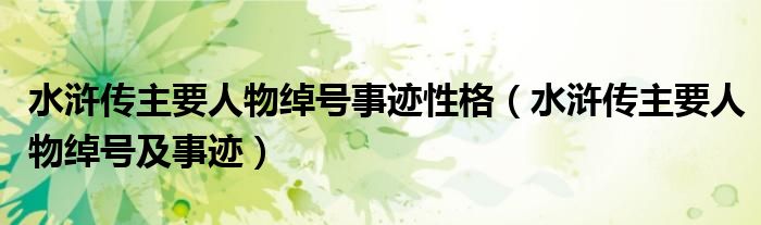 水浒传主要人物绰号事迹性格(水浒传主要人物绰号及事迹)