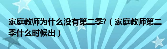 家庭教师为什么没有第二季?(家庭教师第二季什么时候出)