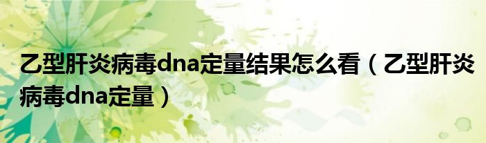 乙型肝炎病毒dna定量结果怎么看(乙型肝炎病毒dna定量)