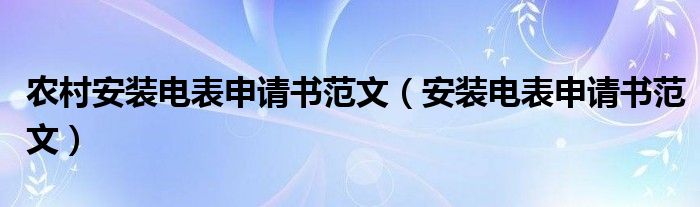 您好,今天帅帅来为大家解答以上的问题。农村安装电表申请书范文,安装电表申请书范文相信很多小伙伴还不知道,现在让我们一起来看看吧!