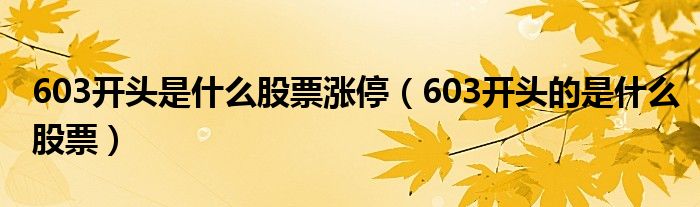 603开头是什么股票涨停(603开头的是什么股票)