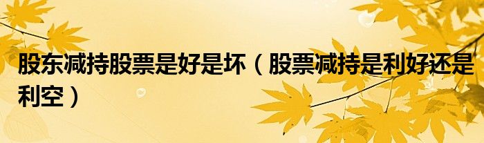 股东减持股票是好是坏(股票减持是利好还是利空)
