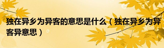 独在异乡为异客的意思是什么(独在异乡为异客异意思)