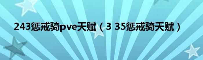 243惩戒骑pve天赋(3 35惩戒骑天赋)