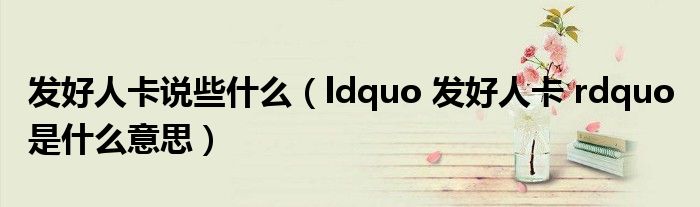 发好人卡说些什么(ldquo 发好人卡 rdquo 是什么意思)
