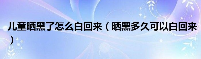 儿童晒黑了怎么白回来(晒黑多久可以白回来)