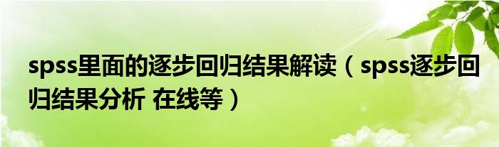 spss里面的逐步回归结果解读(spss逐步回归结果分析 在线等)