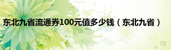 您好,今天帅帅来为大家解答以上的问题。东北九省流通券100元值多少钱,东北九省相信很多小伙伴还不知道,现在让我们一起来看看吧!