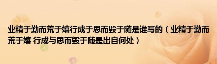 业精于勤而荒于嬉行成于思而毁于随是谁写的(业精于勤而荒于嬉 行成与思而毁于随是出自何处)