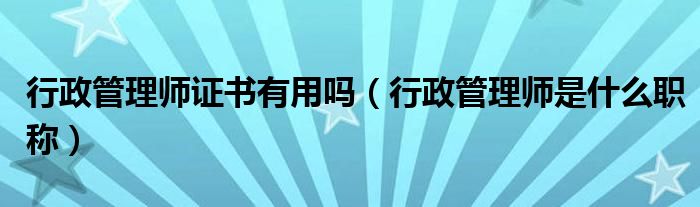 行政管理师证书有用吗(行政管理师是什么职称)
