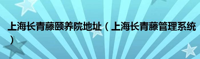 上海长青藤颐养院地址(上海长青藤管理系统)