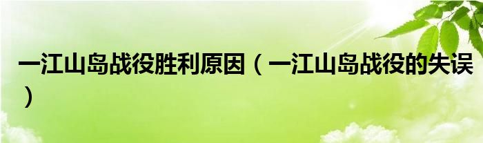 一江山岛战役胜利原因(一江山岛战役的失误)