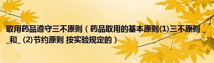 您好,今天帅帅来为大家解答以上的问题。取用药品遵守三不原则,药品取用的基本原则(1)三不原则 _ _和_ (2)节约原则 按实验规定的相信很多小伙伴还不知道,现在让我们一起来看看吧!
