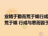 您好,今天帅帅来为大家解答以上的问题。业精于勤而荒于嬉行成于思而毁于随是谁写的,业精于勤而荒于嬉 行成与思而毁于随是出自何处相信很 浏览全文>>
