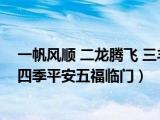 您好,今天帅帅来为大家解答以上的问题。一帆风顺 二龙腾飞 三羊开泰,一帆风顺二龙腾飞三羊开泰四季平安五福临门相信很多小伙伴还不知道, 浏览全文>>