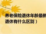 您好,今天帅帅来为大家解答以上的问题。养老保险退休年龄最新政策,40 50养老保险新政策和正常退休有什么区别相信很多小伙伴还不知道,现在 浏览全文>>