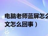 您好,今天帅帅来为大家解答以上的问题。电脑老师蓝屏怎么回事,电脑突然蓝屏出现英文怎么回事相信很多小伙伴还不知道,现在让我们一起来看看 浏览全文>>