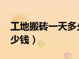 您好,今天帅帅来为大家解答以上的问题。工地搬砖一天多少钱2020,工地搬砖一天多少钱相信很多小伙伴还不知道,现在让我们一起来看看吧!1、 浏览全文>>