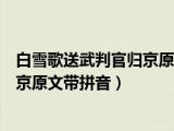 您好,今天帅帅来为大家解答以上的问题。白雪歌送武判官归京原文带拼音带注释,白雪歌送武判官归京原文带拼音相信很多小伙伴还不知道,现在让 浏览全文>>