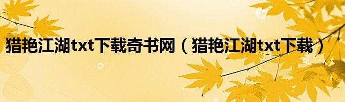 猎艳江湖txt下载奇书网(猎艳江湖txt下载)