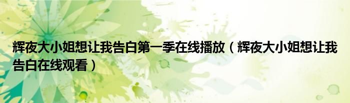 辉夜大小姐想让我告白第一季在线播放(辉夜大小姐想让我告白在线观看)