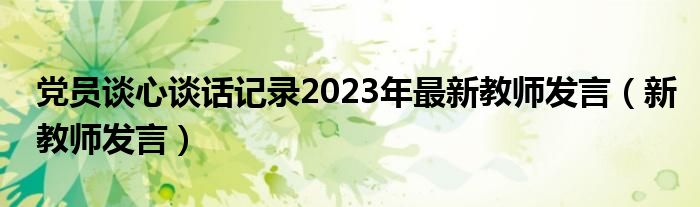 党员谈心谈话记录2023年最新教师发言(新教师发言)