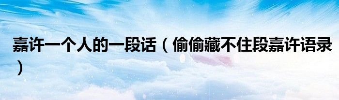 嘉许一个人的一段话(偷偷藏不住段嘉许语录)