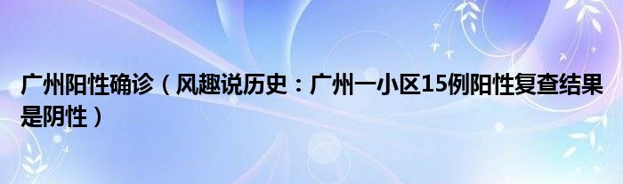 大家好,小宜来为大家讲解下。广州阳性确诊,风趣说历史:广州一小区15例阳性复查结果是阴性这个很多人还不知道,现在让我们一起来看看吧!