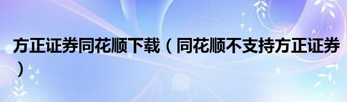 方正证券同花顺下载(同花顺不支持方正证券)