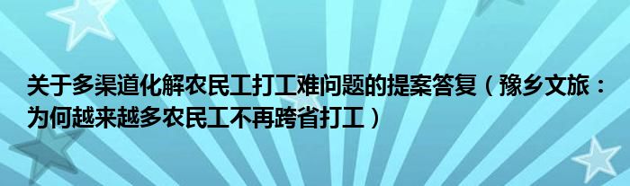 关于多渠道化解农民工打工难问题的提案答复(豫乡文旅:为何越来越多农民工不再跨省打工)