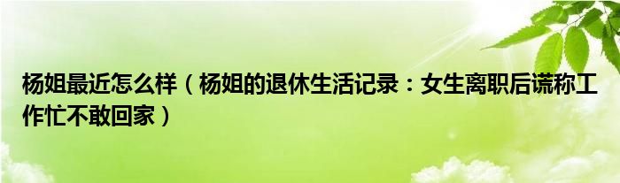 大家好,小宜来为大家讲解下。杨姐最近怎么样,杨姐的退休生活记录:女生离职后谎称工作忙不敢回家这个很多人还不知道,现在让我们一起来看看吧!
