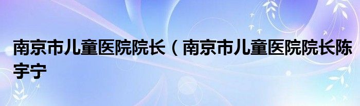 南京市儿童医院院长(南京市儿童医院院长陈宇宁