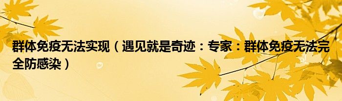 群体免疫无法实现(遇见就是奇迹:专家:群体免疫无法完全防感染)