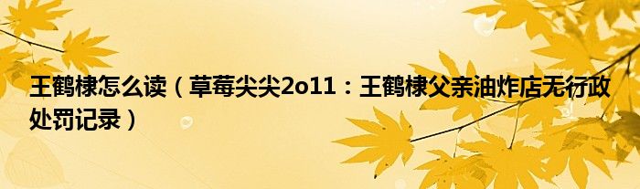 大家好,小宜来为大家讲解下。王鹤棣怎么读,草莓尖尖2o11:王鹤棣父亲油炸店无行政处罚记录这个很多人还不知道,现在让我们一起来看看吧!