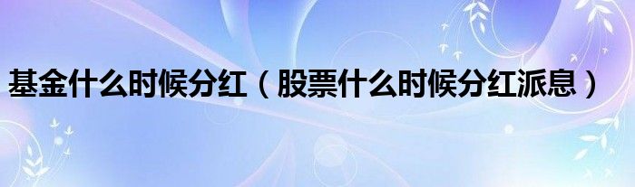 大家好,小宜来为大家讲解下。基金什么时候分红(股票什么时候分红派息)这个很多人还不知道,现在让我们一起来看看吧!
