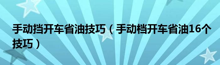 大家好,小宜来为大家讲解下。手动挡开车省油技巧(手动档开车省油16个技巧)这个很多人还不知道,现在让我们一起来看看吧!