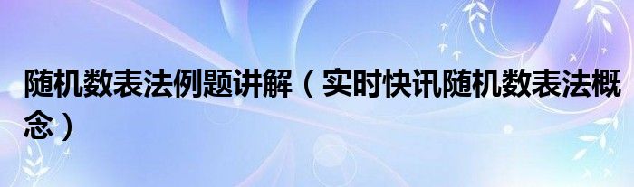 随机数表法例题讲解(实时快讯随机数表法概念)